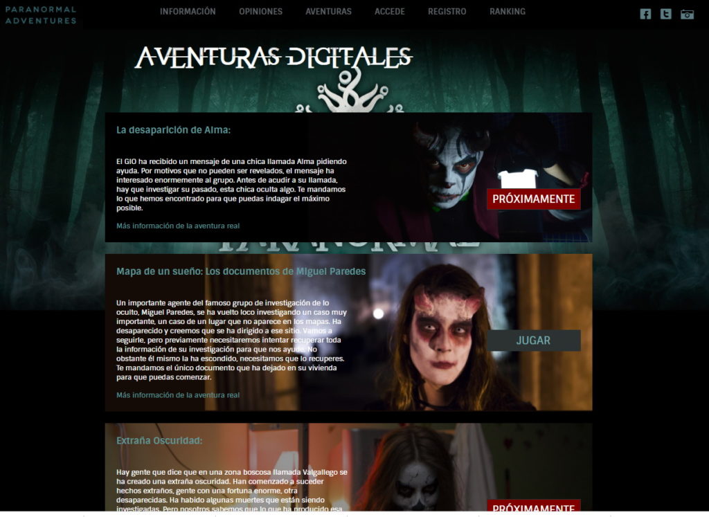 - Complementaria: es independiente pero está relacionada con el contenido de la Paranormal Adventure. De hecho, los logros que obtengas en una aventura digital pueden verse reflejados en la aventura física (por ejemplo, si consigues un aliado.