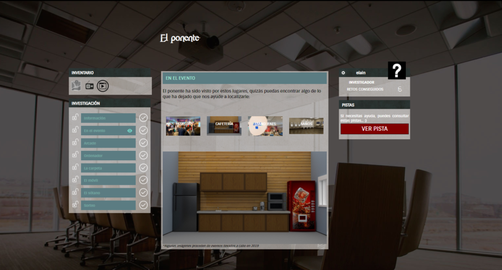 Si lo que quieres es que tu asistente permanezca más tiempo en tu evento y visite el mayor número posible de stands o salas, este es tu juego. Cada vez que llegas a un stand diferente, se desbloquea una nueva prueba. Un juego parecido a los escape room online pero mucho más interactivo y visual, aderezado con pequeños videojuegos.