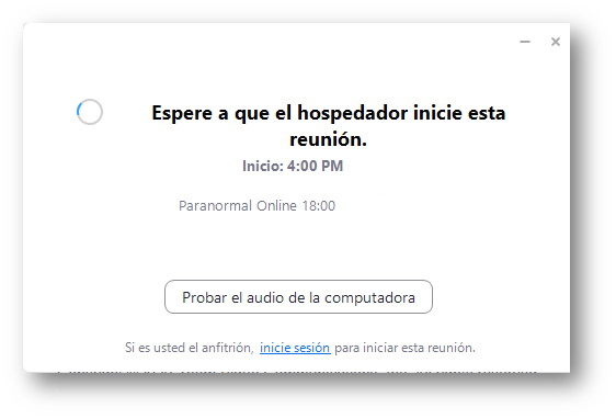 En Zoom se admitirán asistentes 10 minutos antes del inicio real de la Partida, con lo que podréis ir entrando a la sala de espera mientras. En caso de que aún no haya comenzado, veréis algo como esto: