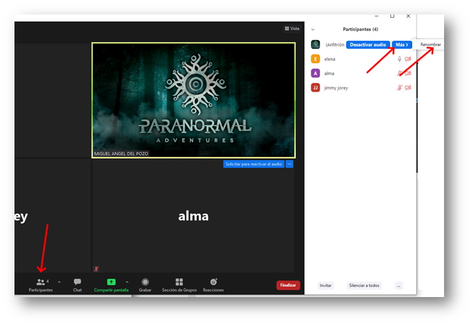 Os meteremos con el micrófono desactivado a Zoom. Podréis activarlo en cualquier momento, pero os rogamos que lo tengáis silenciado en la parte de la introducción y lo activéis en las dudas o ya cuando comencéis con un actor en una sala. Si tenéis problemas de generación de ruido, podréis desactivarlo y activarlo cuando queráis.