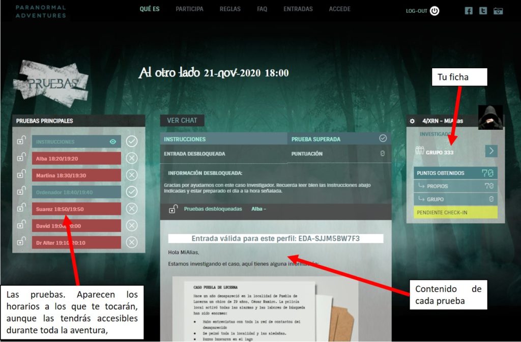 Recuerda que puedes ver tu alias en la aplicación web de paranormal en tu ficha: